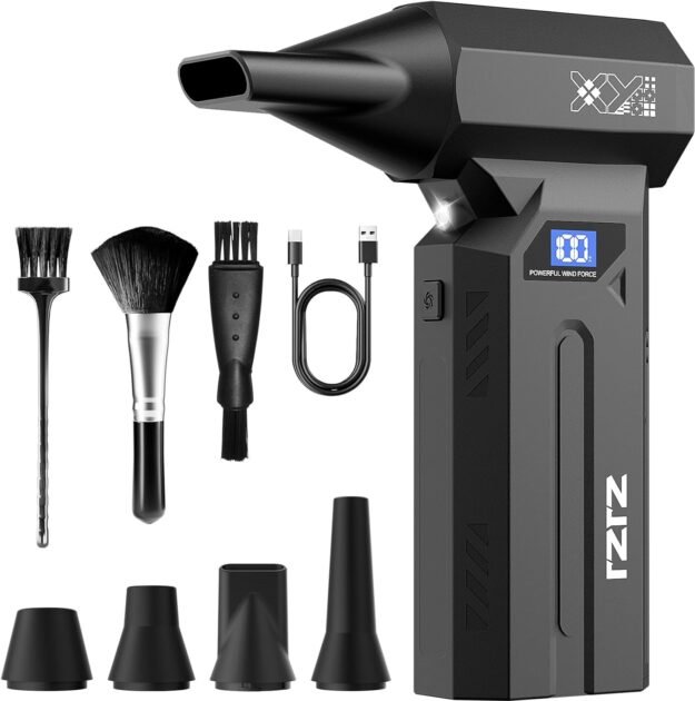 • 🌀【Ventilador Turbo de Super Potencia】Este plumero de aire eléctrico está equipado con un motor sin escobillas de alta velocidad que puede alcanzar una velocidad máxima de 150000 RPM. Cuenta con cuatro ajustes de velocidad del viento ajustables, con un máximo que alcanza los 65 m/s. Su potente fuerza de viento elimina sin esfuerzo el polvo y los desechos de teclados y dispositivos electrónicos. Este soplador de aire manual es una herramienta de limpieza ideal para hogares, oficinas o coches